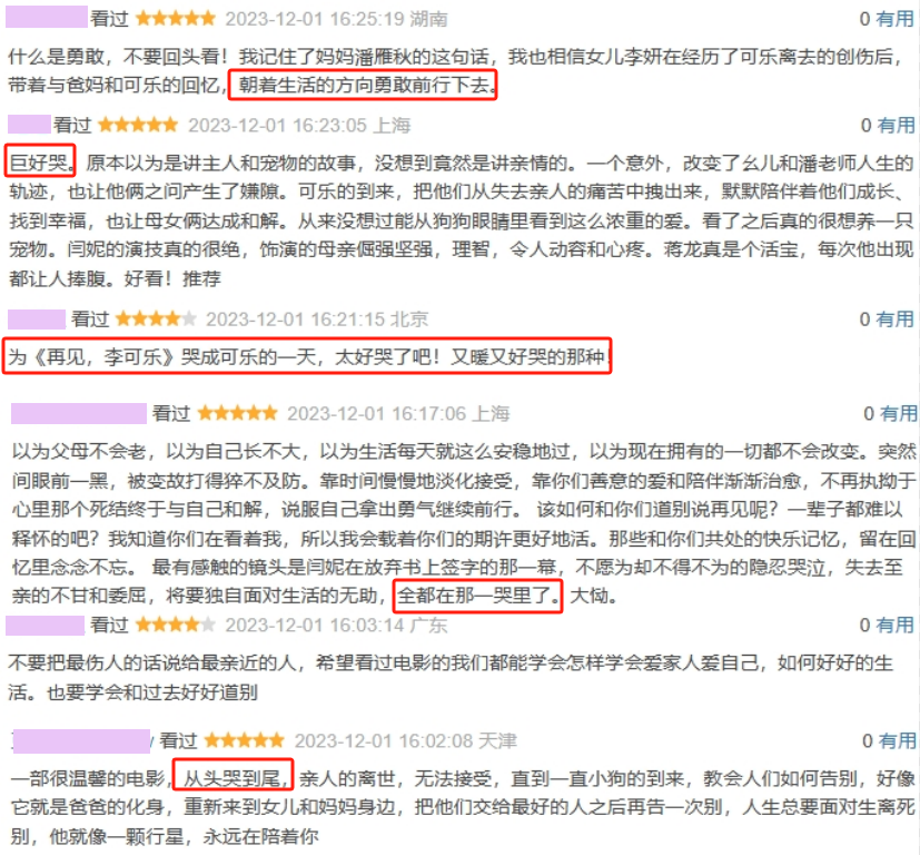 “巨好哭”、“哭成可乐”、“大怮”、“从头哭到尾”。