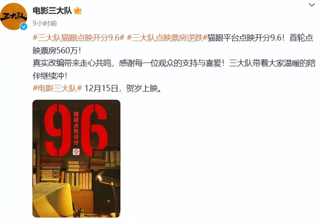没错,《三大队》15日贺岁上映,在极高的呼声中终于提前进行点映。