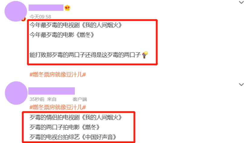 甚至有人表示《我的人间烟火》和《燃冬》主演都是“歹毒”的“两口子”。