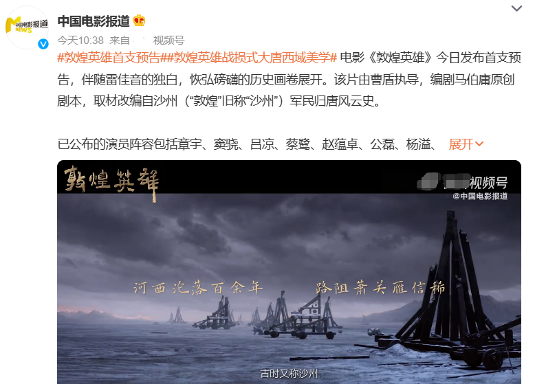 本以为这已经是下半年电影市场的最后一波高潮了,然而没想到的是央视又官宣了另一部历史大片——《敦煌英雄》去年下半年就已经开机,今年1月杀青后立即发布特辑,如今又放送了首支预告,并表示将于下半年与观众见面。