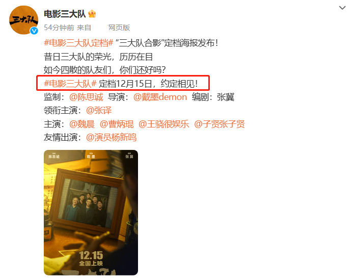 《三大队》3年前项目官宣,去年筹备,马不停蹄12月中旬直接与观众见面。