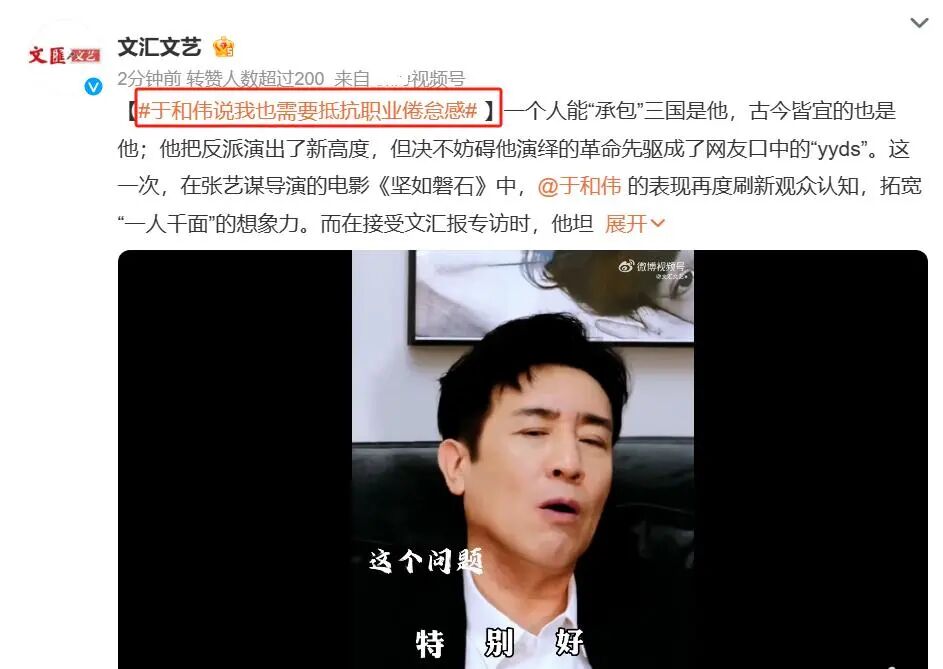 演了这么多年戏,曾经的视频火爆全网,于和伟才真的被看到,对于一个演员来说,其实是有点悲哀的。