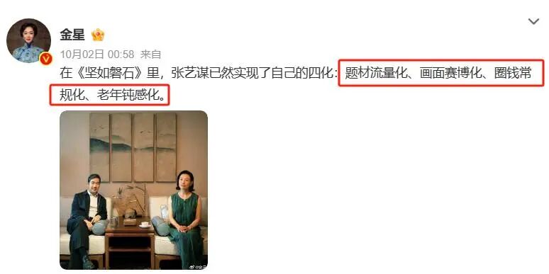 “题材流量化”、“画面赛博化”、“圈钱常规化”、“老年顿感化”,这一番发言让网友彻底开始“狂欢”。
