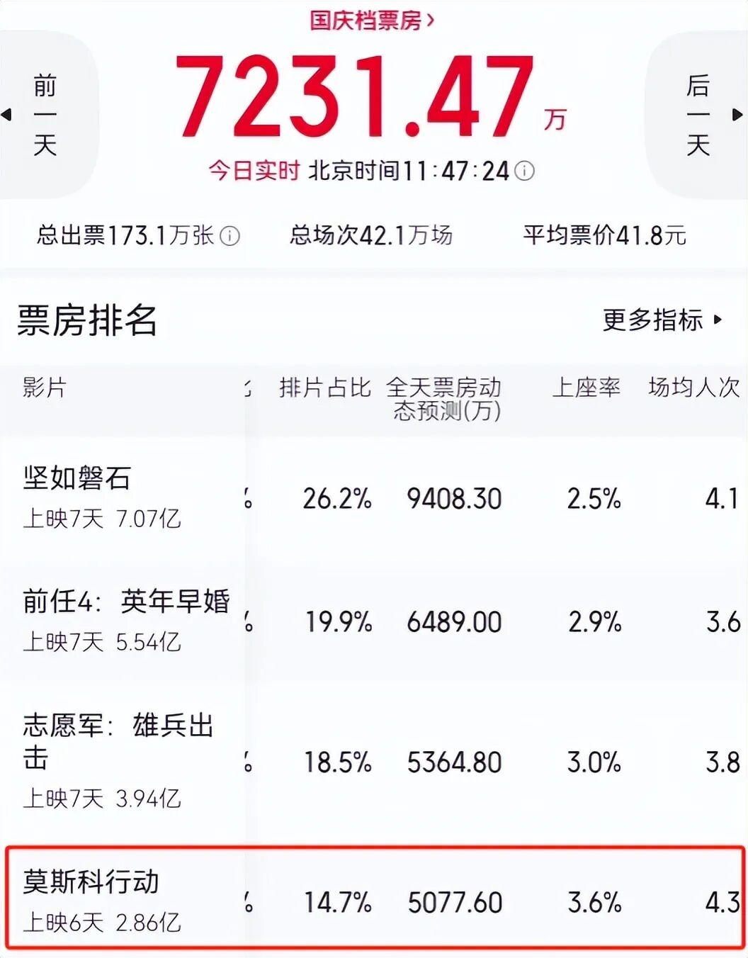 每次看国庆档电影大盘,都要为《莫斯科行动》捏一把汗。