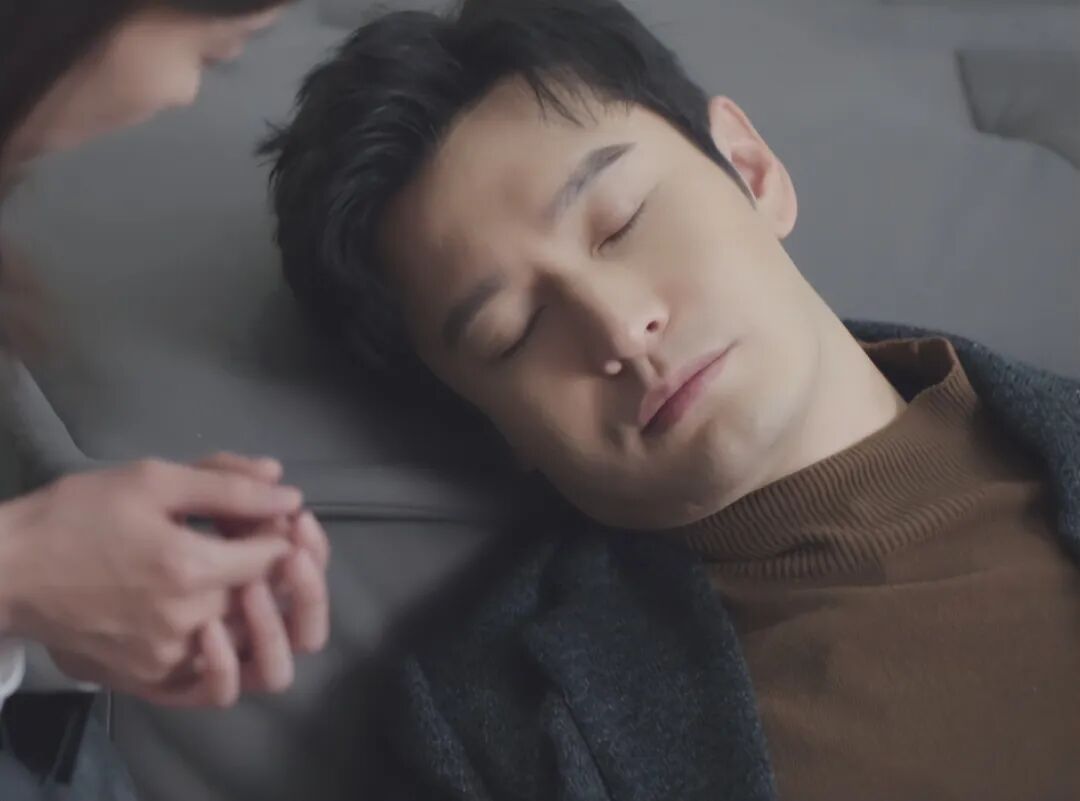 此时黄晓明在戏中已经睡着了,而张小斐蹑手蹑脚来到他身边,正打算要离开,黄晓明醒了。