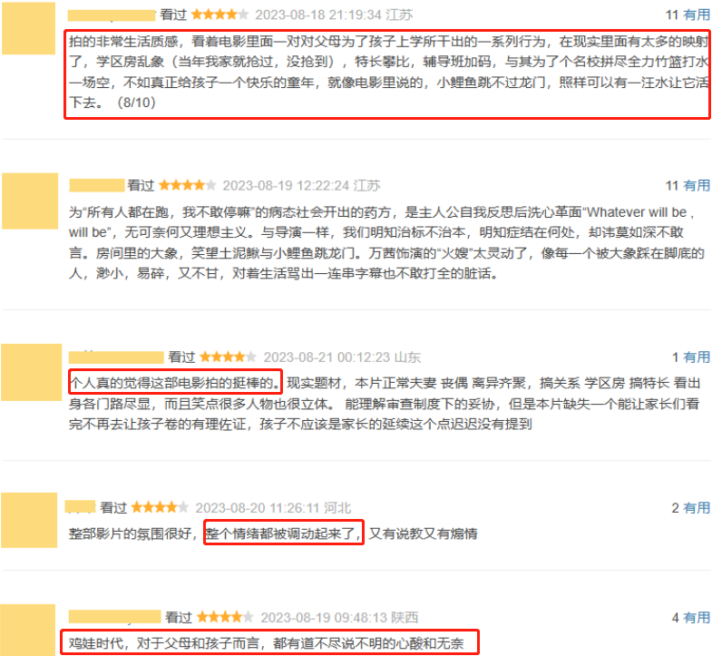 大家纷纷表示自己也曾抢过学区房,特长班的攀比、辅导班加码等现象实在是太真实,情绪全程都被调动了出来,辛酸无奈展现得淋漓尽致。