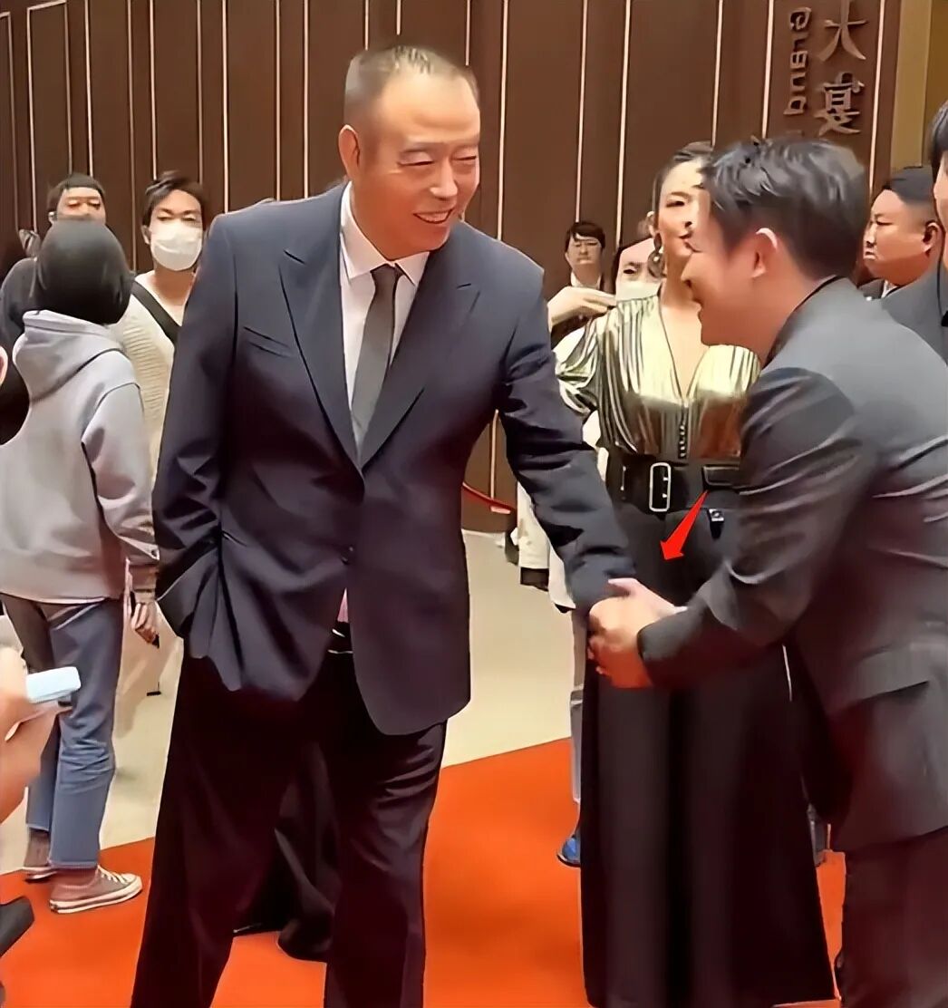章子怡被推到旁边似乎暗戳戳翻了个白眼,不过下一秒又乐呵呵地与张颂文和陈凯歌寒暄。