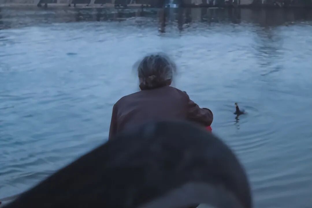 同时,他在水中放了一块类似病号服的条纹布,在上面摆放了玩具,就像疯子一样。