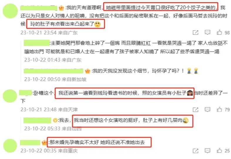 因为胃口大,是钱玲怀孕导致的,被审讯时,钱玲其实也有点显怀了,坐姿与马哲老婆一模一样。