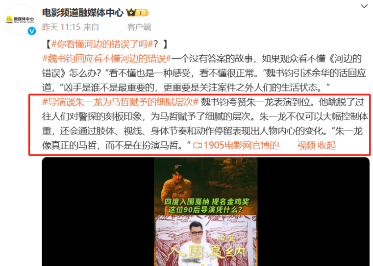 “朱一龙像真正的马哲,而不是在扮演马哲。”