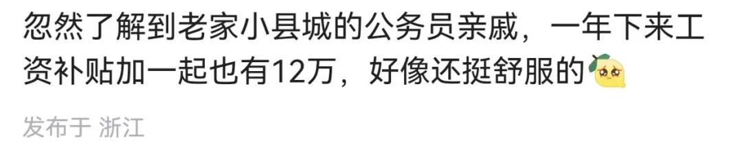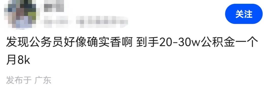 不过据说,现在的公务员待遇真的不错,在东部发达城市,年薪到手都有20-30万了,这相当于在互联网大厂年薪50万了。