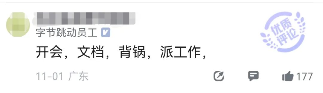 某位字节跳动的员工,也给出了答案:开会,文档,背锅,派工作。月薪50k在字节跳动基本是2-2或3-1级别的,属于资深研发人员或初级领导,主要的工作是出方案,协调周边,带人甚至是写代码,所以每天会忙于开会,写文档,派工作,甚至还会背锅。