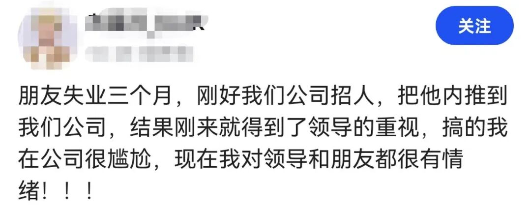 这位网友的朋友失业3个月了,刚好自己的公司也在招人,便好心将朋友内推到自己的公司,和自己做起了同事。可谁曾想,他朋友却成了他最大的竞争者,领导更加看重他朋友,反而自己非常尴尬。