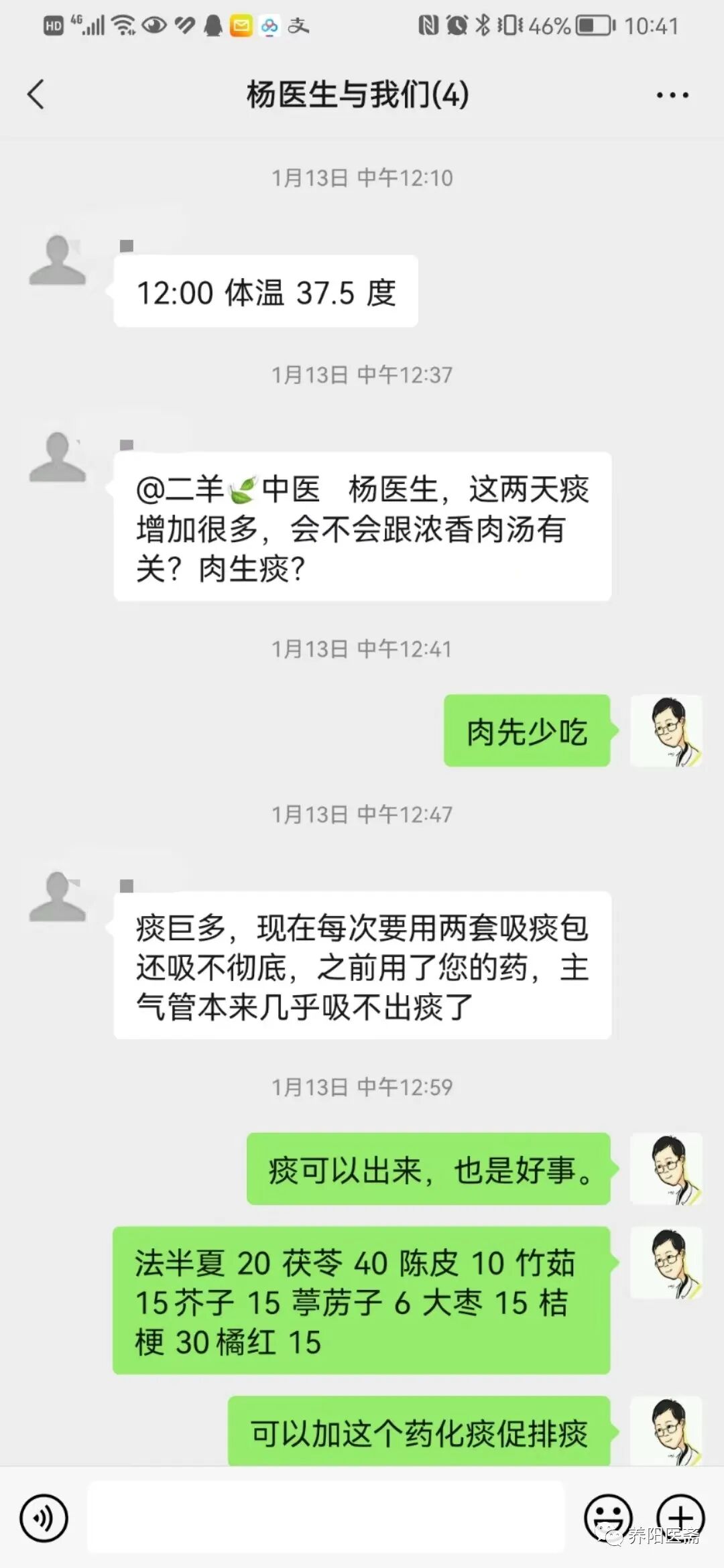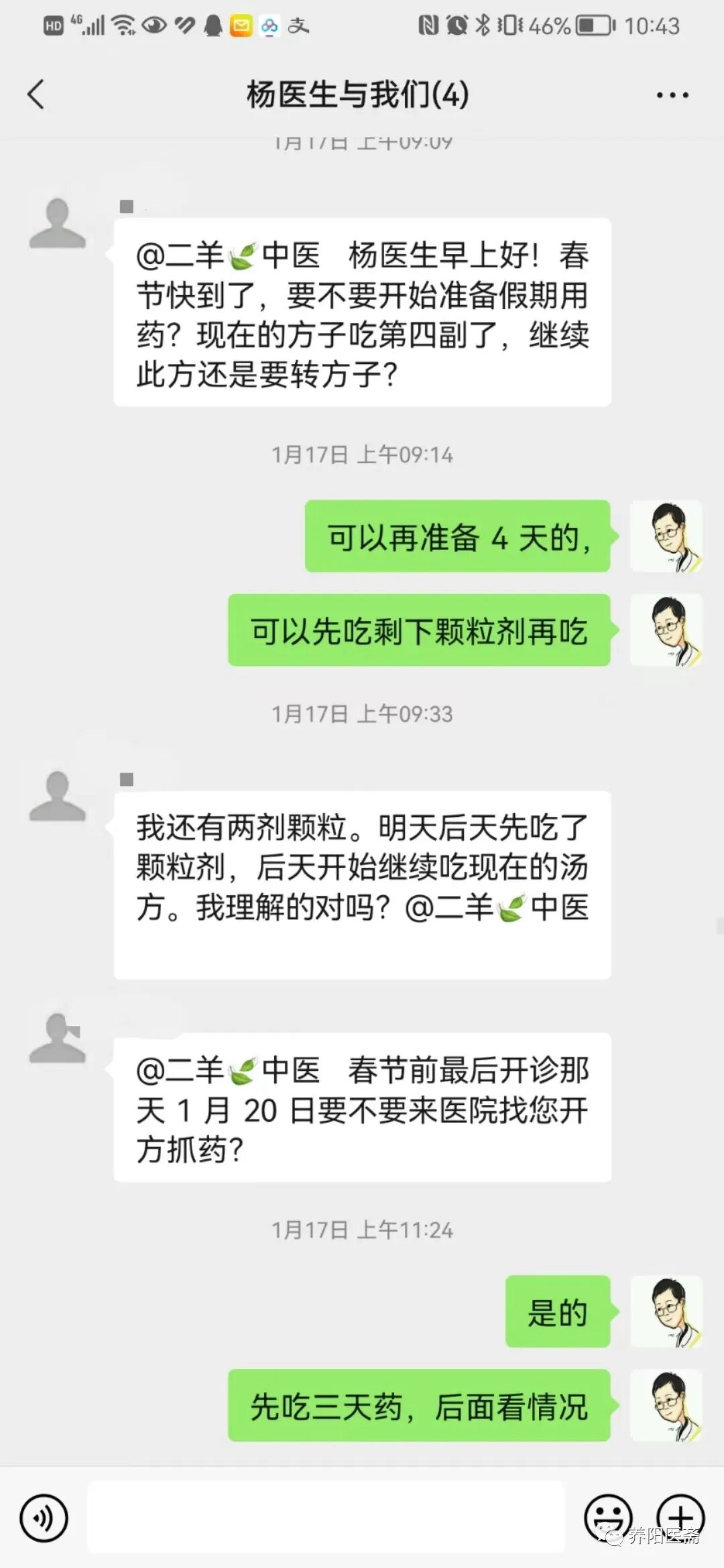 1月17日体温稳定,让继续准备前面方子巩固
