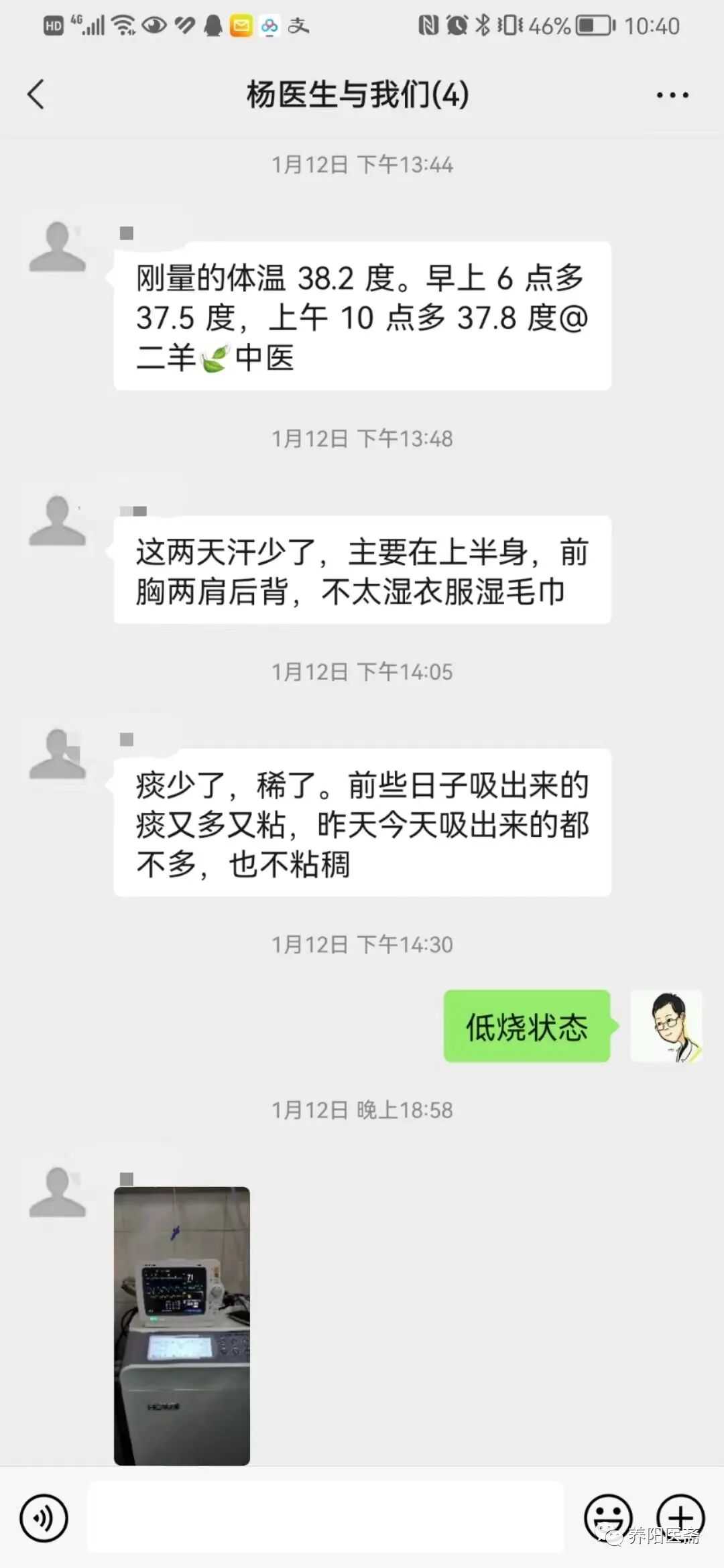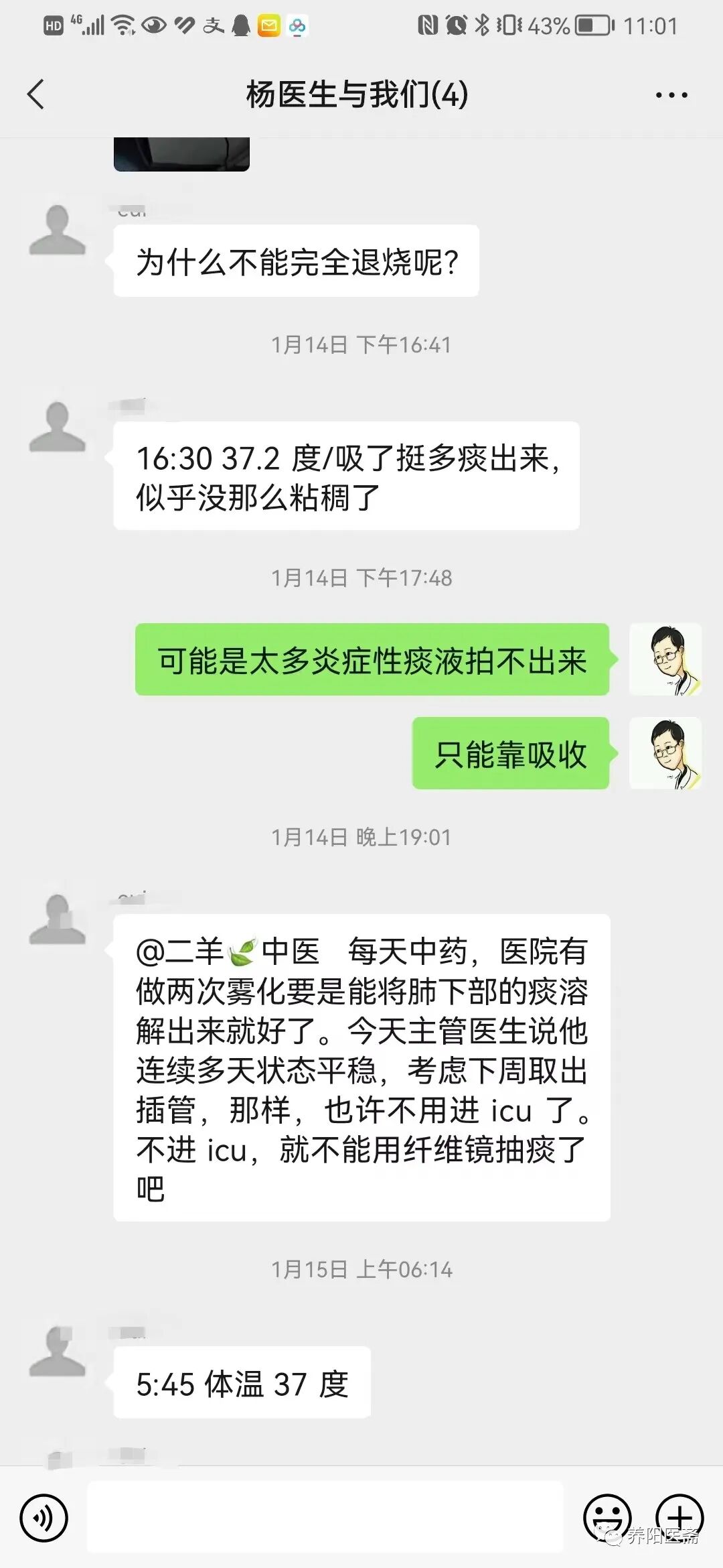 1月14日上午体温稍反复烧到38度,下午可回落37度