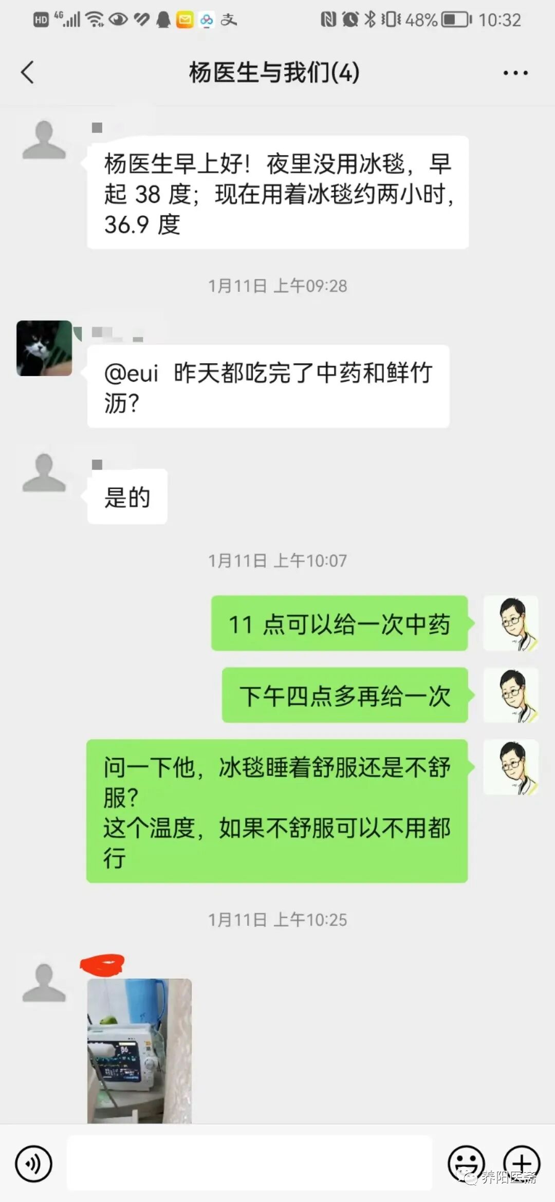 昨晚服药中药后夜间体温38左右,第二天上午用了冰毯体温36.9度