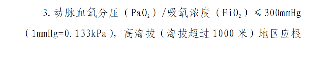 ② PaO2/FiO2 < 80 mmHg 超过 6 小时;