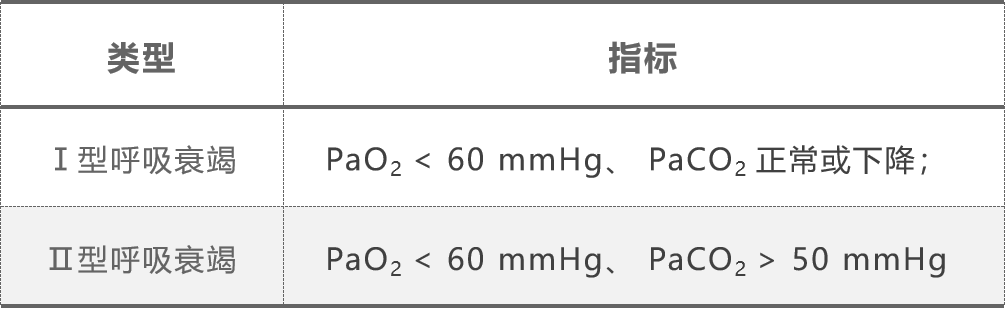 ② 若 PaCO2 < 50 mmHg ,PaO2 > 60 mmHg ,可计算氧合指数,其公式为:氧合指数 = PaO2/FiO2 < 300 mmHg;提示:呼吸衰竭。