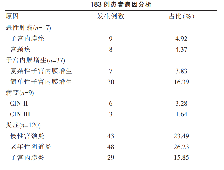 [1]章慧玲.绝经妇女不规则阴道出血病因分析[J].中外医疗,2018,37(30):62-64.DOI:10.16662/j.cnki.1674-0742.2018.30.062.