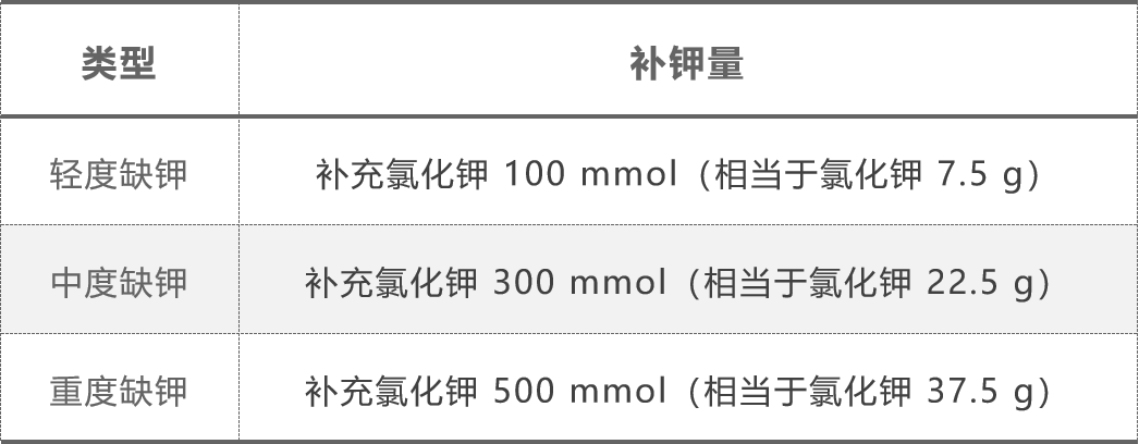 1)口服补钾:轻度低钾通常推荐口服补钾;中度低钾可采用口服联合静脉补钾;