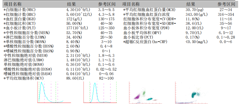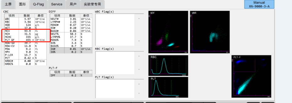 这三项如果都正常,再看 HCT、MCV、MCH、MCHC 及 WBC 分类结果,如果都正常,散点图也没有异常,如下图。那么是不是就可以放心的审核了呢?