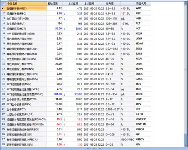 如下图,单看这个检验结果,你是不是会觉得就是一个普通的贫血患者,而且还有历史结果,历史结果也是贫血,应该没有什么大问题,一不留心可能就被你审核出去了。