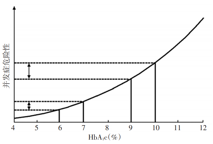 图 1 HbA1c 与糖尿病患者微血管并发症危险性的关系曲线