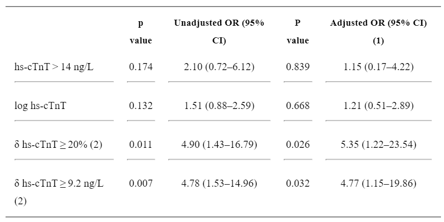 表 1 hs-cTnT 升高或变化与住院死亡率的关系
