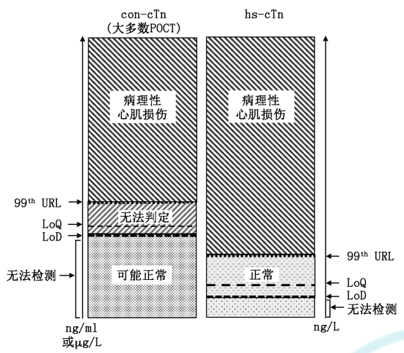 图 2 普通心肌肌钙蛋白与高敏心肌肌钙蛋白的比较