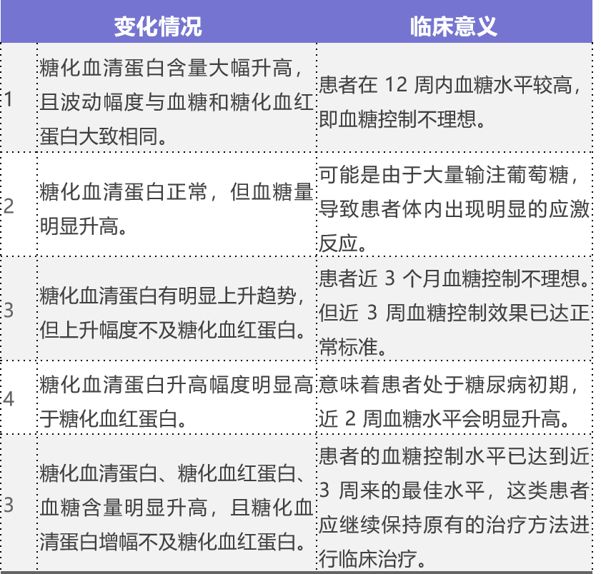 糖化血清蛋白水平反映 2 ~ 3 周前的血糖控制情况,特别是最近 2 周的血糖控制状况,因此相较于糖化血红蛋白,在反映血糖控制效果上更敏感、更及时,也更适合应用于短期内血糖发生变化的患者。