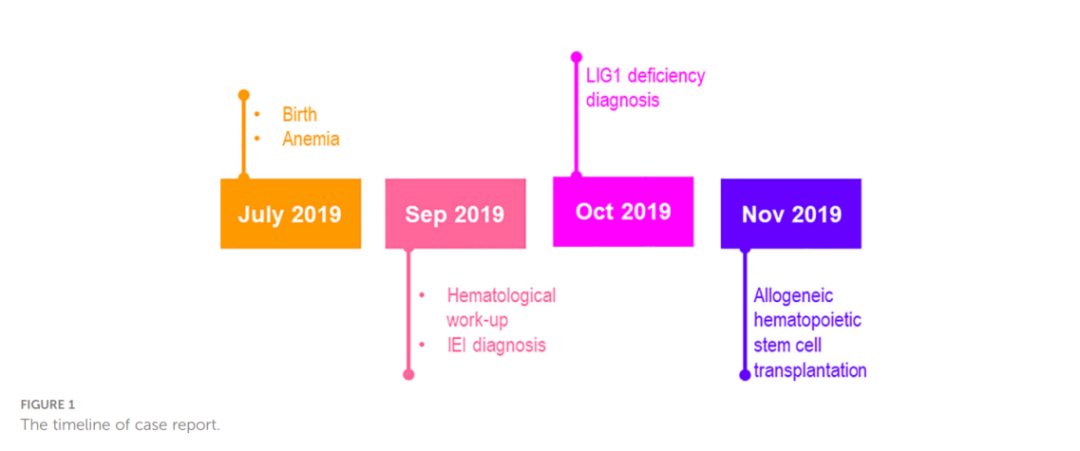 图 1 患儿出生后的时间轴