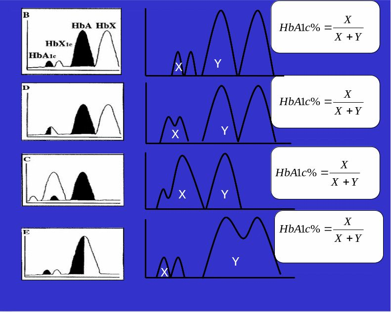图 2 血红蛋白变异体影响 HbA1c 结果多种情况图示