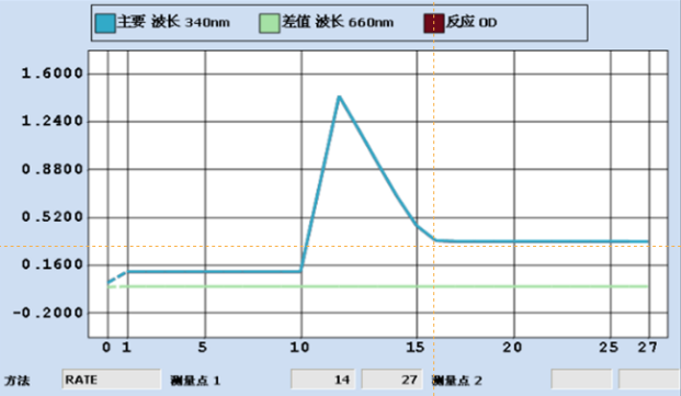 若要能看懂反应曲线,首先要知道在整个反应过程中,我们的设备都进行了哪些操作,该项目的反应类型、反应方向以及读取吸光度值(OD 值)的检测点。