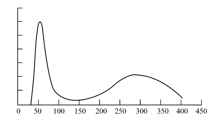 图 3 离心洗涤前黄疸标本测定的白细胞直方图(上)和正常直方图(下)