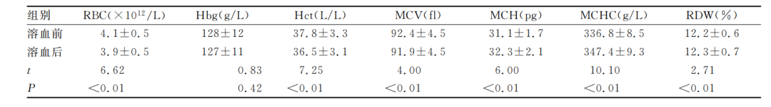 标本溶血对白细胞以及血红蛋白无影响或影响较小。溶血会导致红细胞大量被破坏,红细胞的破坏直接导致 RBC 计数结果偏低,破裂的红细胞碎片体积小于正常红细胞,仪器计算 MCV 时会偏低,进而使得 Hct 值也下降。
