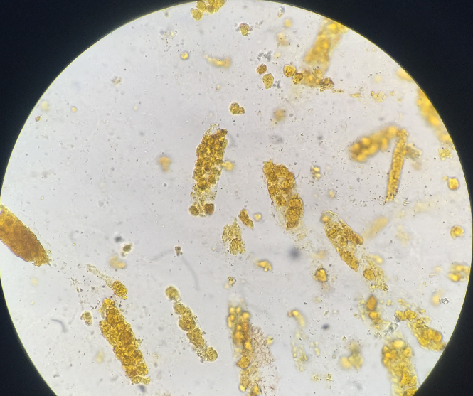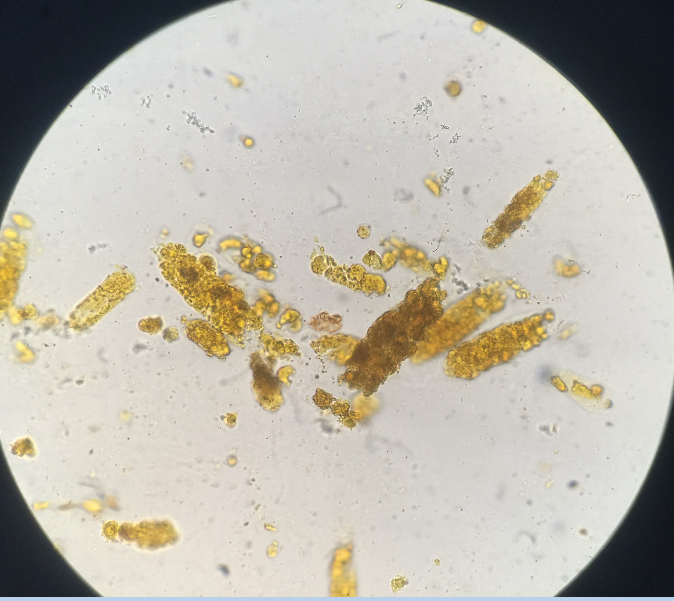 带着疑问,我继续查阅书籍资料,发现肾小管上皮细胞管型在正常人尿液中不会出现,多见于急性肾小管坏死、急性肾炎,药物中毒等,还可见于阻塞性黄疸,重症肝病 [2]。看到阻塞性黄疸,重症肝病。我眼前一亮,患者正是慢乙肝重度倾向,胆红素升高,总胆汁酸异常升高,符合阻塞性黄疸表现。