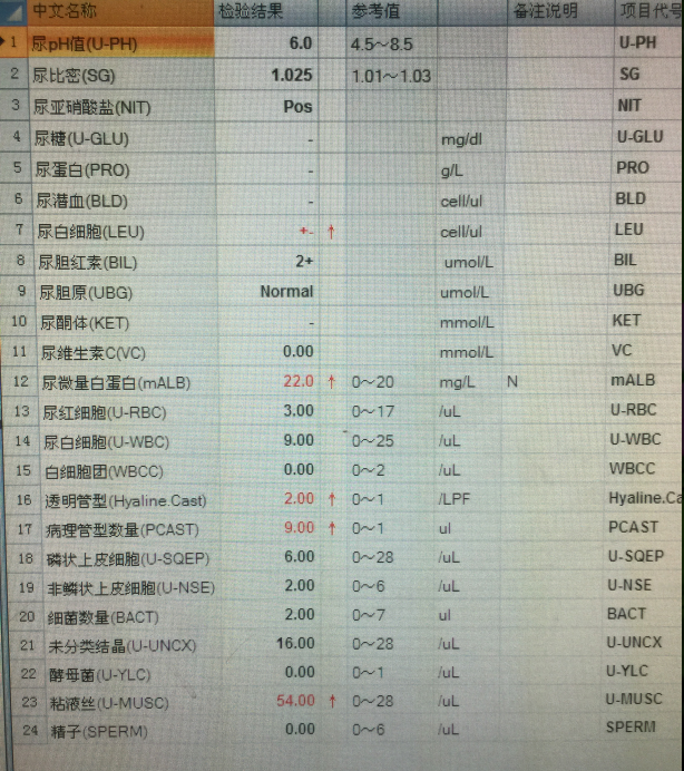 不看不知道,一看吓一跳,尿蛋白是阴性,怎么这么多管型?难道是尿蛋白试验做错了?于是立即用磺基水杨酸法确认一下,然而,尿蛋白仍然是阴性的,再看看尿液 pH 值 6.0(pH < 3.0,可导致尿干化学法假阴性),也不在引起假阴性的范围内,保险起见,我们还进行了尿蛋白定量检测(尿微量白蛋白),患者微量白蛋白 22 mg/L,也在接近正常的范围。