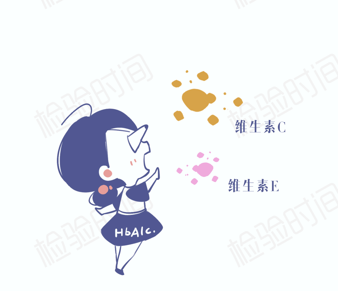 维生素 C 和维生素 E 会影响血红蛋白的糖化速率,因此长期大剂量服用维生素 C 或维生素 E 会造成 HbA1c 假性降低。