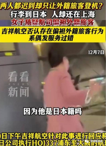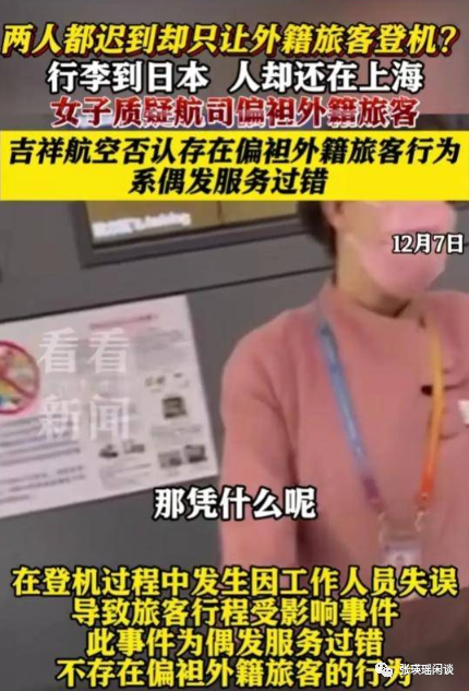 而那个机场工作人员态度恶劣,一边玩手机一边应付,根本不在乎这件事。她懒洋洋地说:“这和乘客的国籍没关系,没事。”那你为什么让日本人上飞机呢?