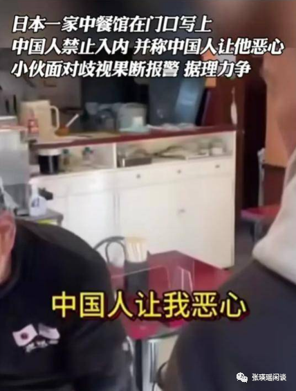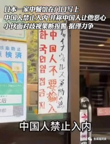 12月9日,一位中国小伙在日本东京出差,路过一家中餐馆,发现门口竟然贴着“中国人禁止入内”的纸条。