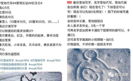 我有一个朋友,他在冬天利用雪地代写服务,零成本却月入上万。他利用自己的书法功底,每天在淘宝、咸鱼等平台挂售售卖链接,每份代写服务净赚80元。