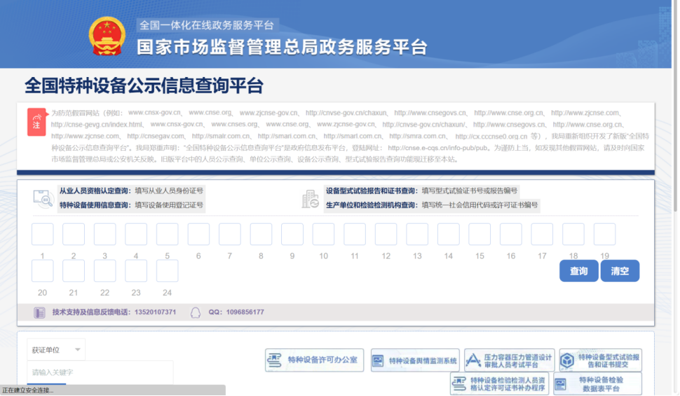 全国特种设备公示信息查询平台:http://cnse.e-cqs.cn/info-pub/pub