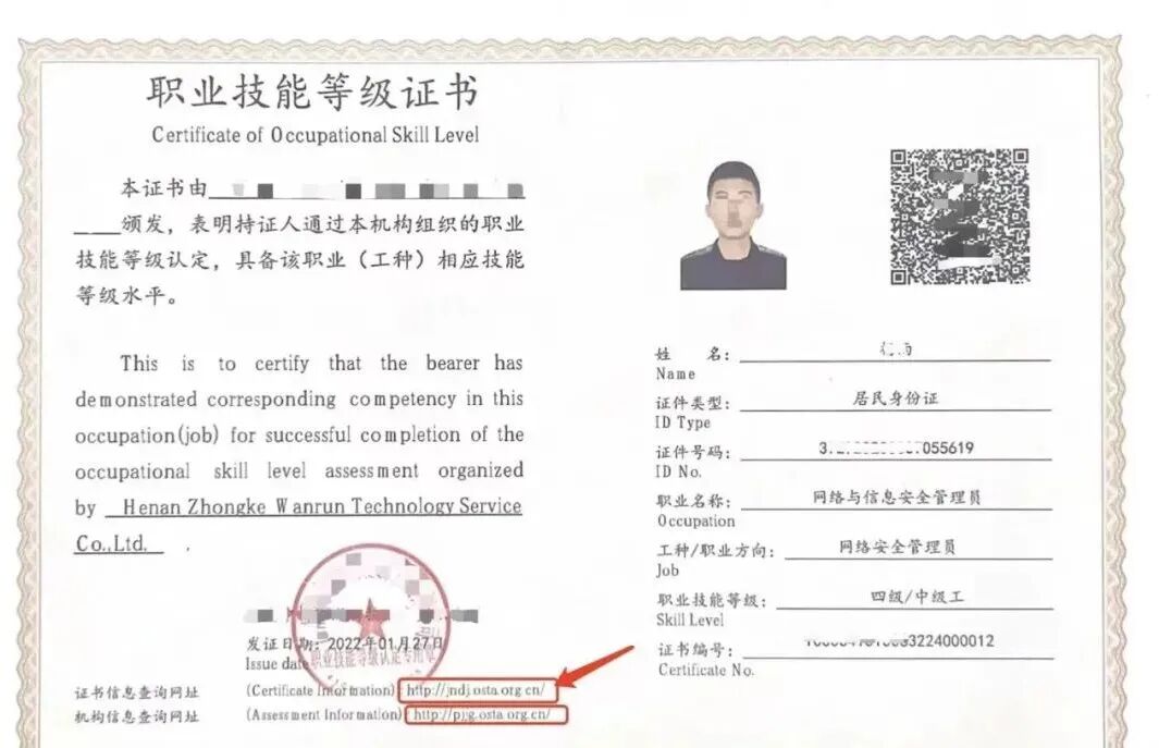职业技能等级证书为国家通用权威证书,无需年审,终身有效,一证一码,可在国家官方网站(技能人才评价网 http://www.osta.org.cn/,简称:osta)联网查询。