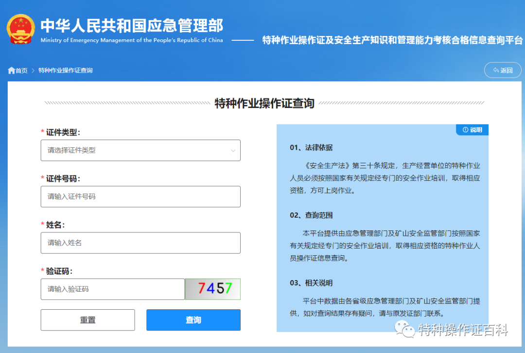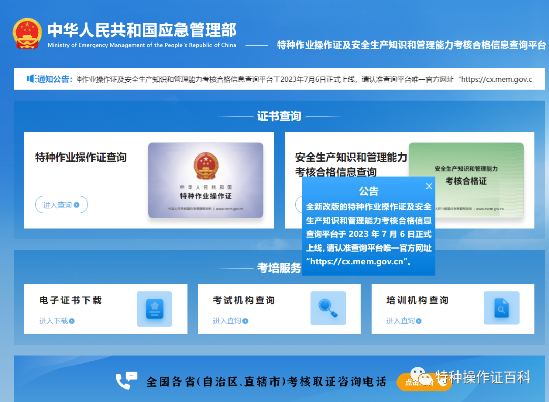 查询特种证书的应急部网站:cx.mem.gov.cn