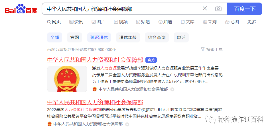 第一步百度《中华人民共和国人力资源和社会保障部》