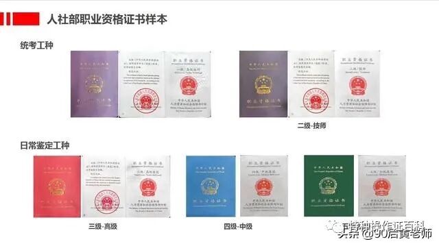 证书共分为五个等级分别是:初级(五级)、中级(四级)、高级(三级)、技师(二级)、高级技师(一级)。