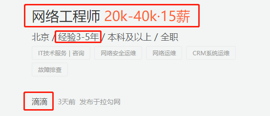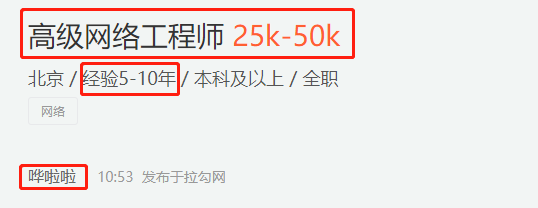 我们虽然并没有办法每个人都站在巅峰,但对比之下可以看到,有经验可以独挡一面的网络工程师会更受到市场的追捧。