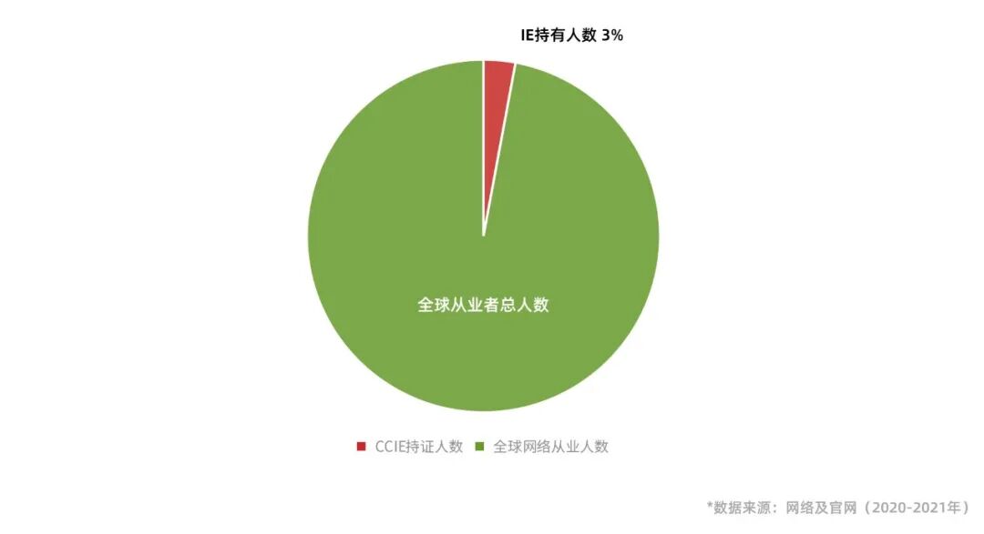 CCIE的持有者占思科认证总人数还不足3%,全球网络从业者的1%不到,这是思科官方给的数据。