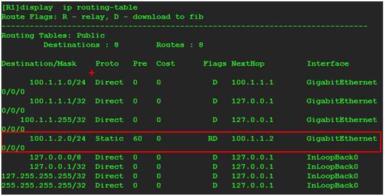 [R1]ip route-static 100.1.2.0 24 100.1.1.2