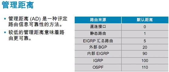在思科的路由中,路由优选使用管理距离值来确定,管理距离值是由思科定义,所以厂商之间是可能有差异的。
